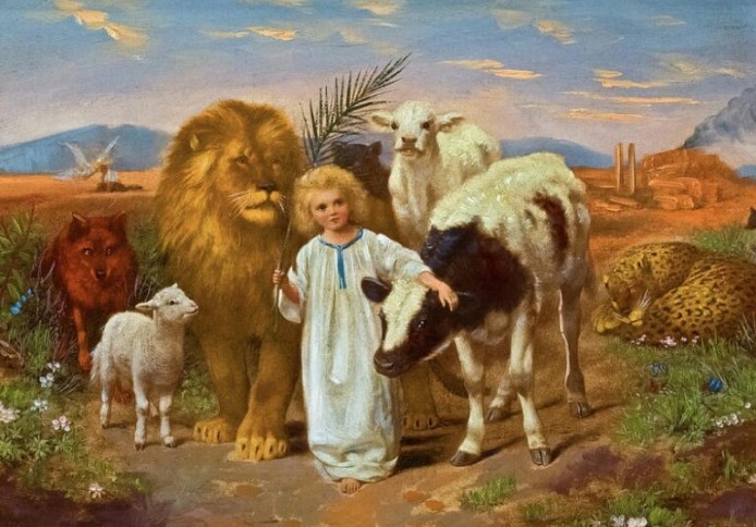 “The wolf also shall dwell with the lamb, and the leopard shall lie down with the kid; and the calf and the young lion and the fatling together; and a little child shall lead them.” Isaiah 11:6