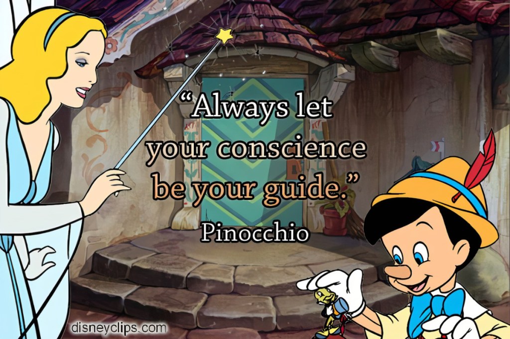 As I child, my first understanding of following my conscience came from the song sung by the character of Jiminy Cricket in Disney’s animated classic “Pinocchio”. The Blue Fairy give the wooden puppet Pinocchio a conscience and Jiminy Cricket is always there to remind him to do so.